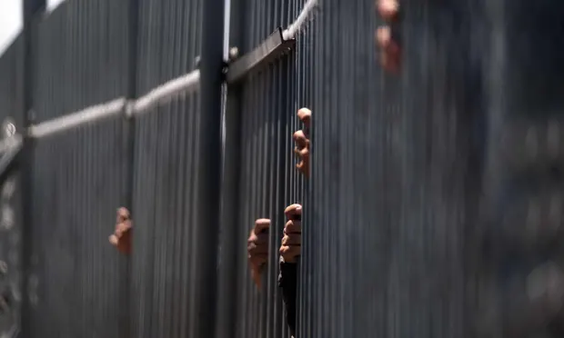 Migrants hold the fence bars of the immigration detention centre where 39 died during a fire. The deaths are being investigated as suspected homicides. Photograph: Guillermo Arias/AFP/Getty Images
