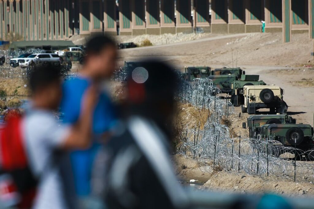Texas National Guard soldiers vehicles are seen as migrants continue to wait at the U.S.-Mexico border on January 8, 2023 in Ciudad Juarez, Mexico. Photo: Christian Torres/Anadolu Agency via Getty Images