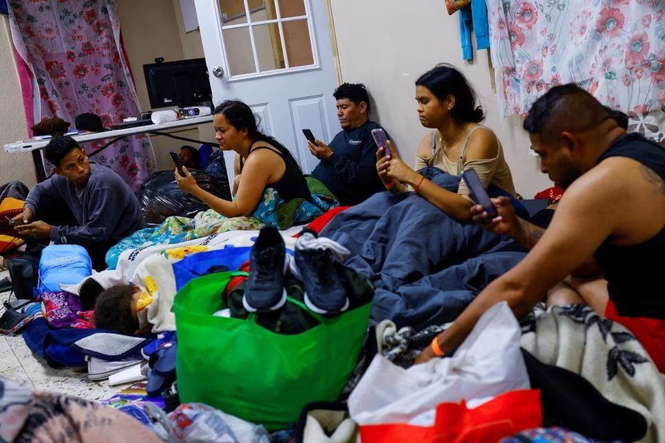 Migrants, mostly from Venezuela seeking asylum in the U.S., use their phones to access the U.S. Customs and Border Protection (CBP) CBP ONE application to request an appointment at a land port of entry to the U.S., in a shelter near the border between Mexico and the United States, in Ciudad Juarez, Mexico February 24, 2023. REUTERS/Jose Luis Gonzalez