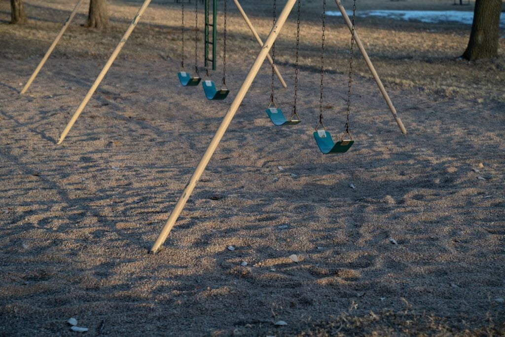 A swing set at Mormon Island State Recreation Area at Grand Island, Neb., on Feb. 25. The fallout from the Packers Sanitation Services case in Grand Island illustrates the painful complexity of enforcing U.S. child labor laws. (Madeline Cass)