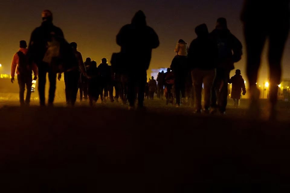 Migrants, mostly Venezuelans, participate in a caravan, with the intention of turning in themselves to U.S. Border Patrol agents, on the banks of the Rio Bravo river in Ciudad Juarez, Mexico February 8, 2023. REUTERS/Jose Luis Gonzalez