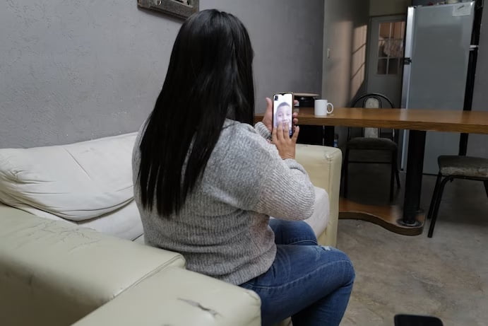 Noyemi, a Honduran migrant who was separated from her 3-year-old son in 2018 under the Trump administration’s zero tolerance policy, speaks with her son in a nightly video call. (Kevin Sieff/The Washington Post)